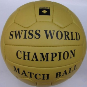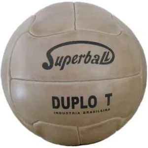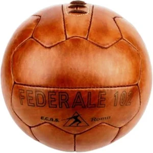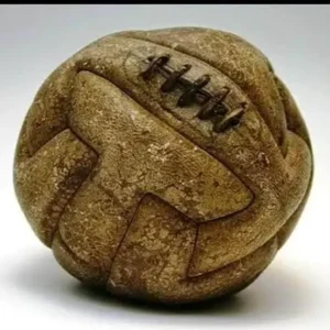 Primer balón de cuero con costuras visibles. Más estable, pero aún absorbía agua con facilidad.